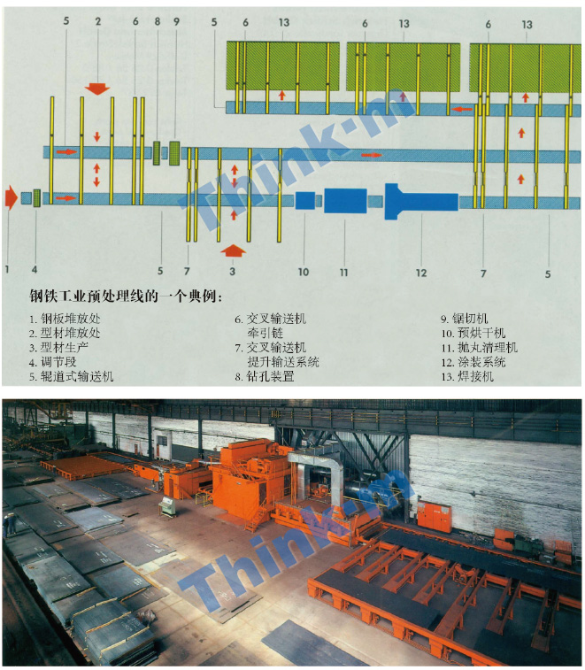 建造船舶所用钢材的尺寸是对表面处理******的挑战。大量的钢板和特殊型材需要在装配前进行清理、切割、焊接和喷漆等预处理。防腐蚀也就理所当然成为重点中的重点。表面处理工艺的第一部分在预处理线上完成,预处理线将抛丸、上底漆和烘干等工艺结合起来。经过预处理线,钢板和型材被彻底地抛丸清理,并涂上一层临时的防腐蚀涂层。除外部输送设备外,预处理线还包括预热炉、连续通过式抛丸机、喷漆房,和带烘干通道的移动式炉栅。