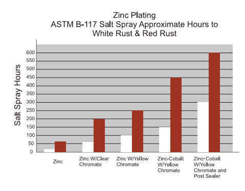 在镀锌之后,运用铬酸盐作后处理封闭很大程度上加强了防腐蚀保护。 封闭剂与铬酸盐膜化学结合,以密封和硬化铬酸盐膜也增加了锌表面的附着力。同时也将减少铬酸浸出和指纹痕迹,极大地提高耐蚀性。密封剂可以应用在蓝白、黄色,、彩色、黑色铬酸盐转化的涂层。盐雾测试结果显示在加了后处理封闭之后,工件的防腐蚀能力增加了50%-100%。并且红锈保护增加到300-500小时。此外考虑到加强防腐保护的重要性,封闭的成本非常经济。